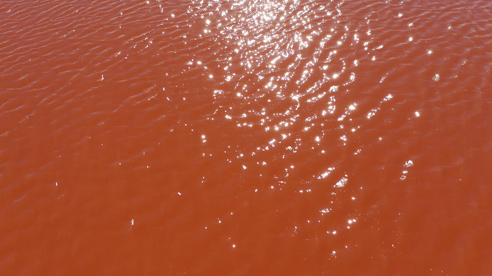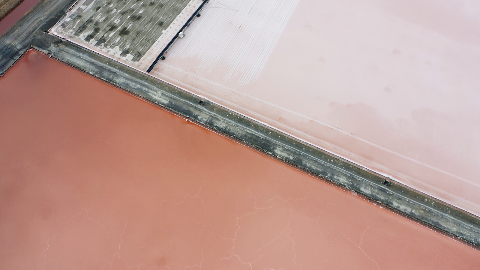 A dry and windswept body departs from I am a salt lake, returning to Kāpara-Te-Hau during the salt harvest. The video is composed from drone footage that moves above the lake, revealing its contours alongside the industrial processes operating on the site. As the drone scans the landscape, an accompanying audio track experiments with the textures and rhythms of breath, drawing a connection between the ruffled surface of the water and a soundscape structured by breathing.